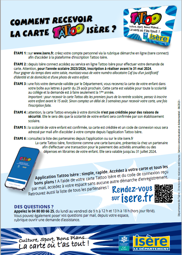 Dégressif au 2ème et 3ème inscrit d'une même famille. voir fiche d'inscription.
